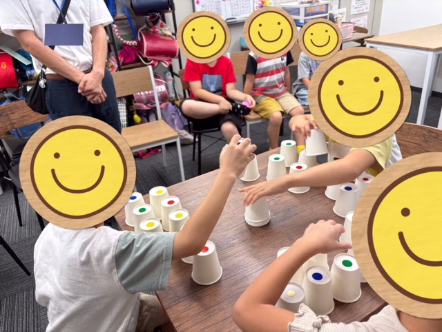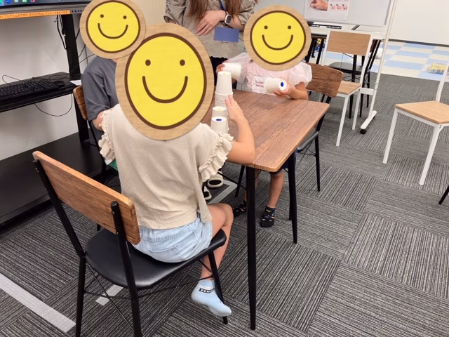 紙コップの裏と表にシールが貼ってあり、同じ色の紙コップを探して重ねていくゲームで、自分の紙コップの手持ちが無くなった人の勝利です😊