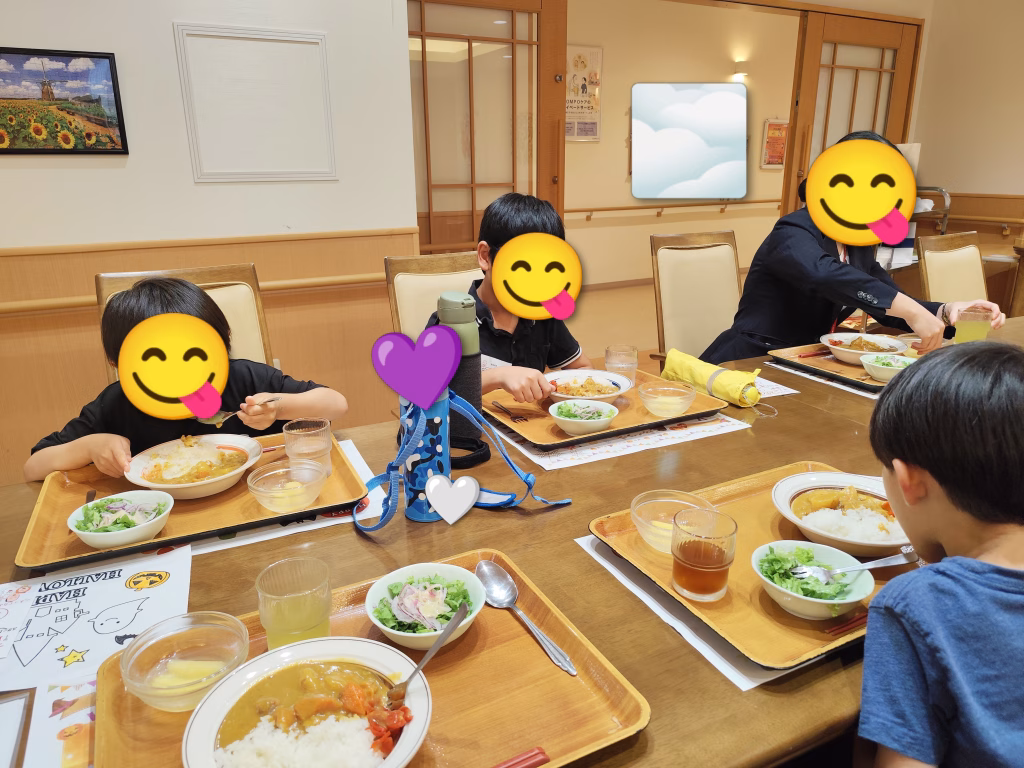 施設の方々と元気よく挨拶を交わし、美味しいカレーをいただきました♪