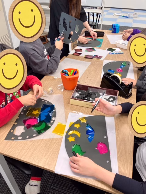どんな配色にするか悩んだり、貼った後に顔を書いて工夫する姿が見られました!😯
