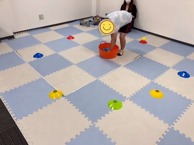 先日の脳トレのプログラムは、カラーボールを使った遊びを2種類行いました。