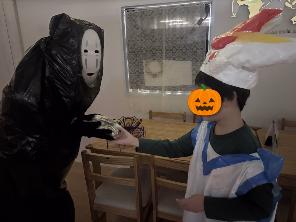 職員が扮したカオナシから、恐る恐るお菓子を受け取る子も・・・(笑)