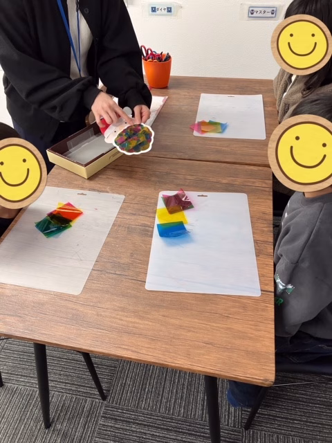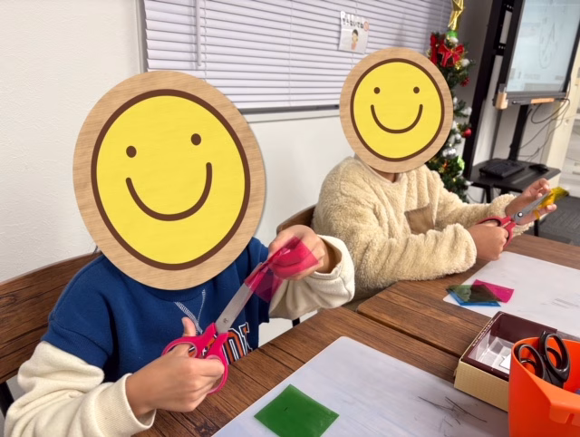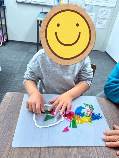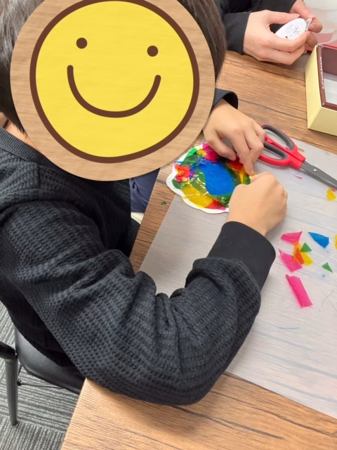 まずはハサミでカラーセロファンをチョキチョキ✂️