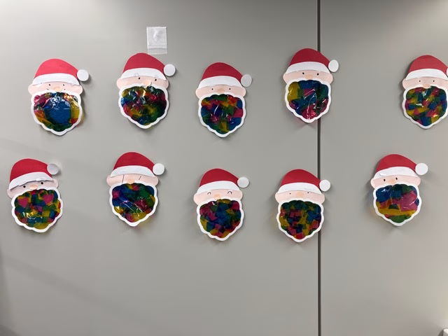 セロファンが切れたらサンタさんに貼り付けていきます!