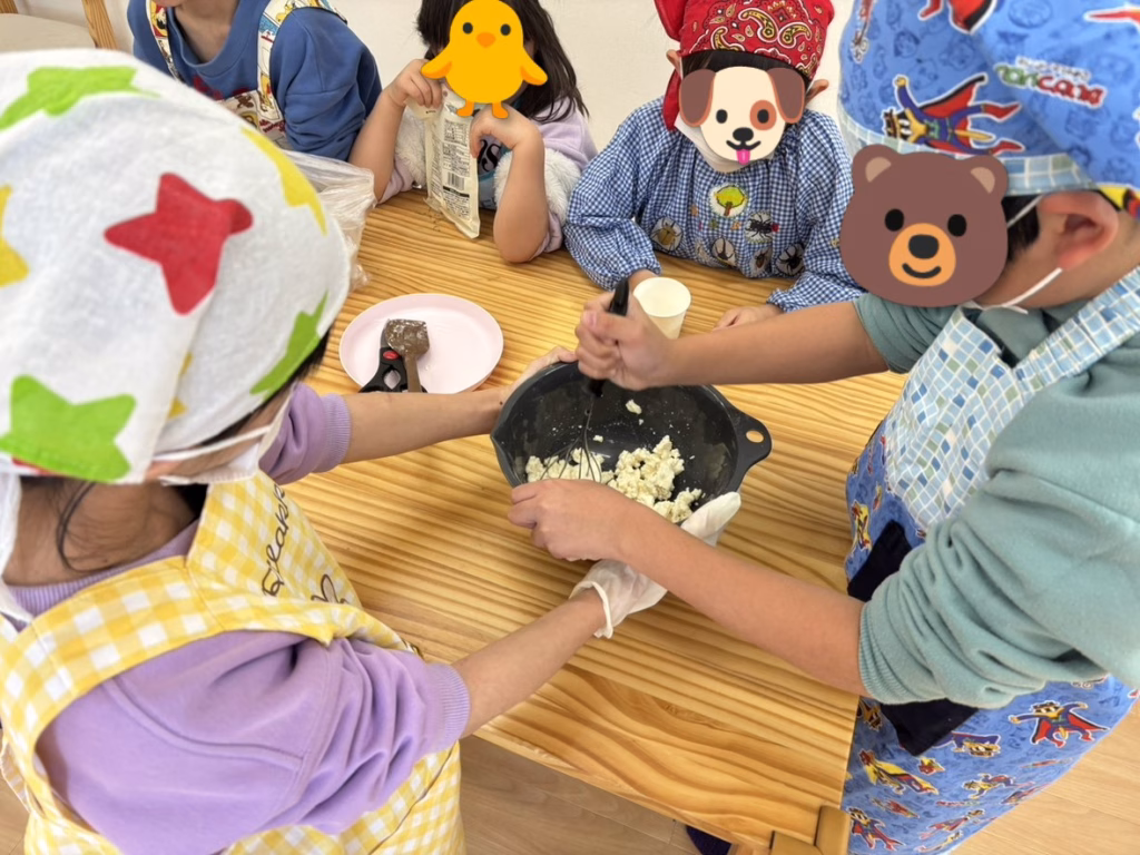 粉やお水等の材料を量ったり、混ぜ合わせる工程からみんなで協力して頑張りましたよ🔥