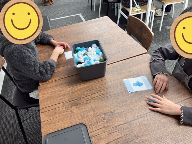 先日は指先の微細な運動が求められる、ペットボトルのキャップ積みを行いました。