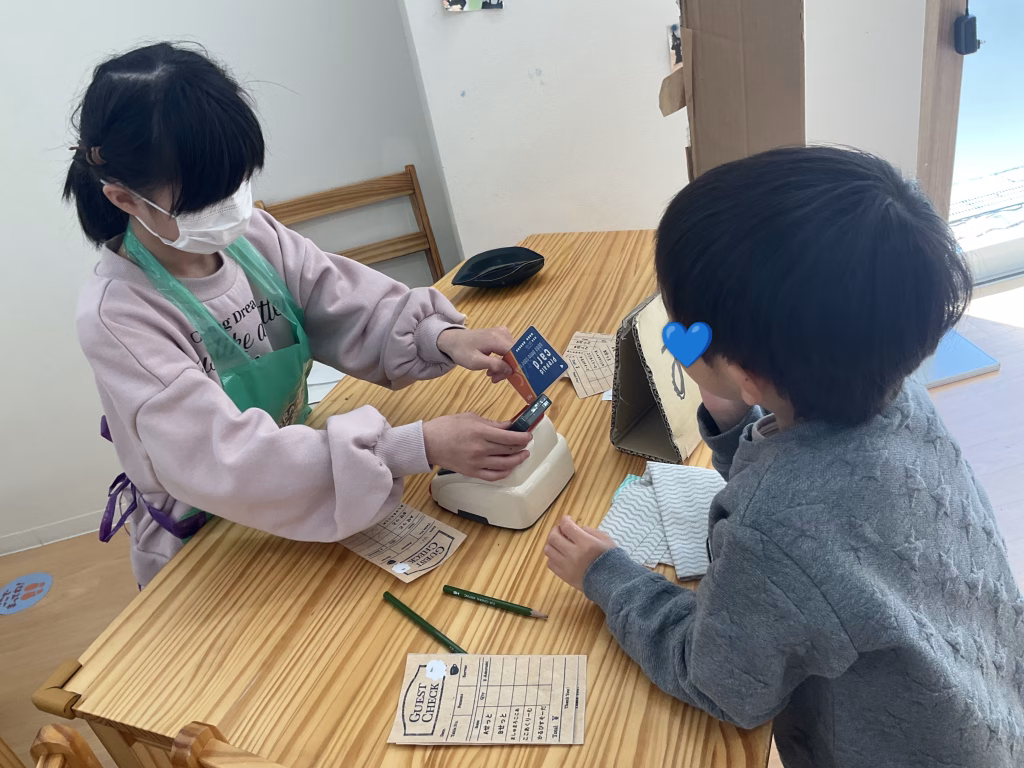 お仕事の確認をした後はグループを作り、お客さんとカフェ店員さんをローテーションで体験スタートです✨