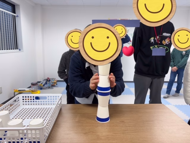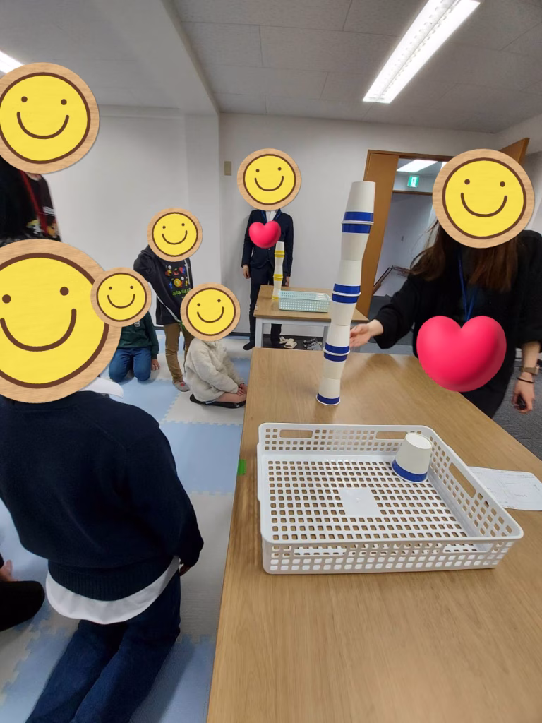 先日は紙コップを重ねるバランスゲームを行いました!