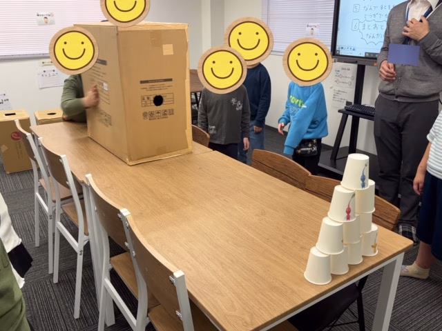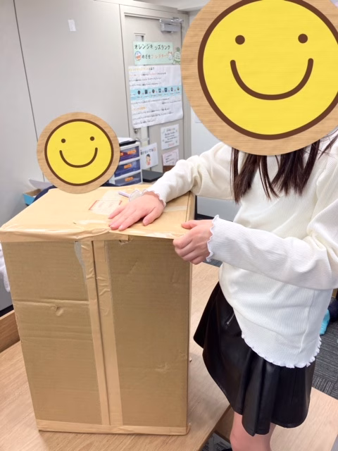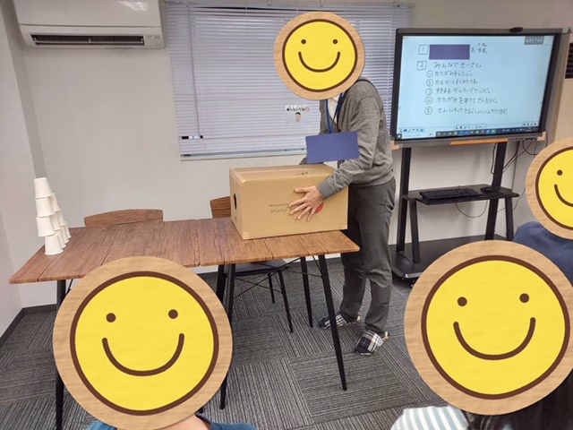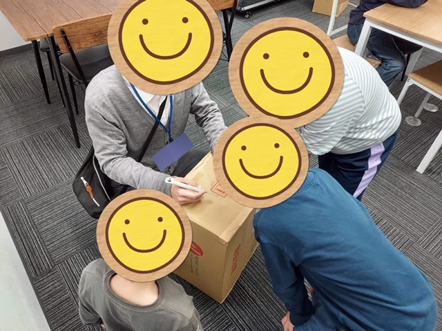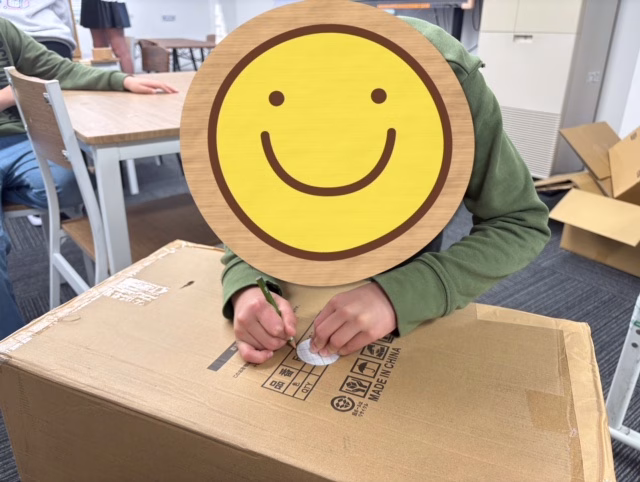 今回は段ボールの大きさや穴の形や大きさをチームごとに好きなものを選びました。